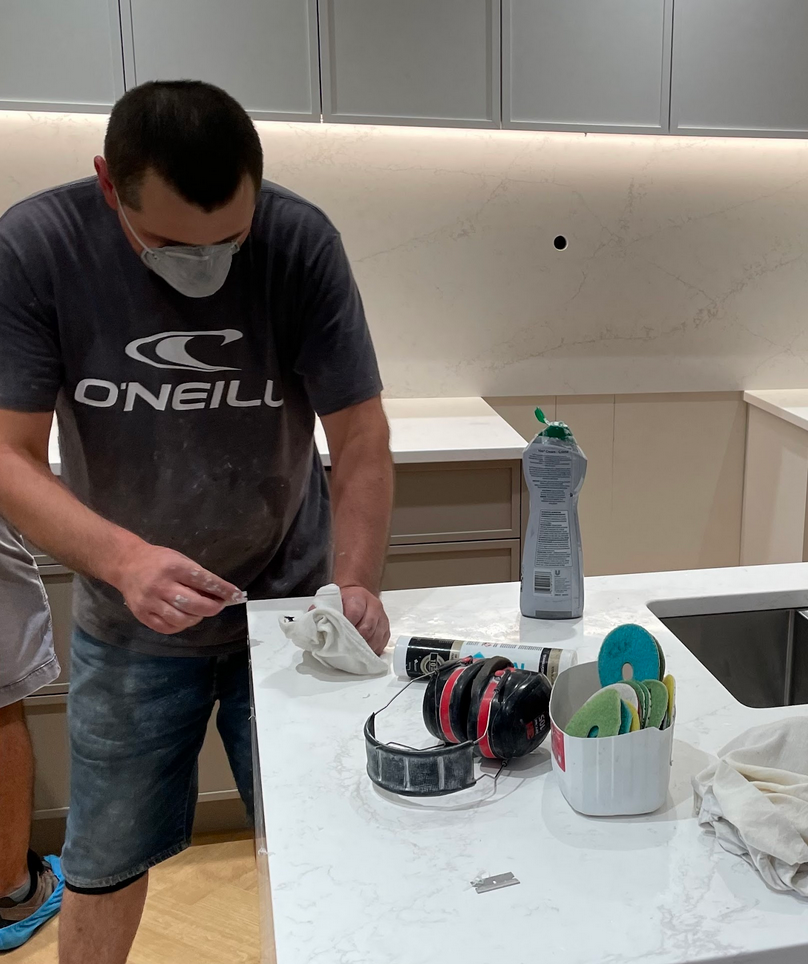 Appris en Europe, perfectionné ici — nos comptoirs sont taillés, livrés et installés avec un savoir-faire inégalé.